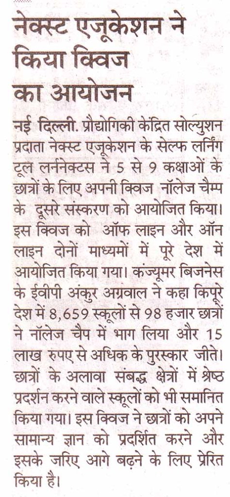 Dainik Navjyoti, Jaipur : NE - LearnNext Knowledge Champ Quiz Coverage