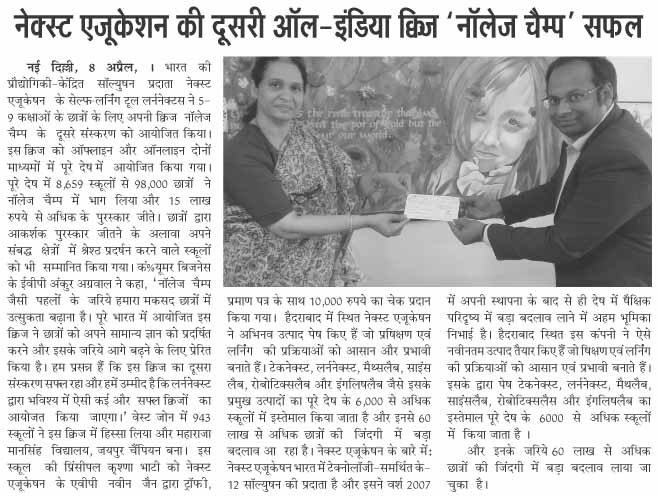 Dainik Taj Bharati, Jaipur : NE - LearnNext Knowledge Champ Quiz Coverage